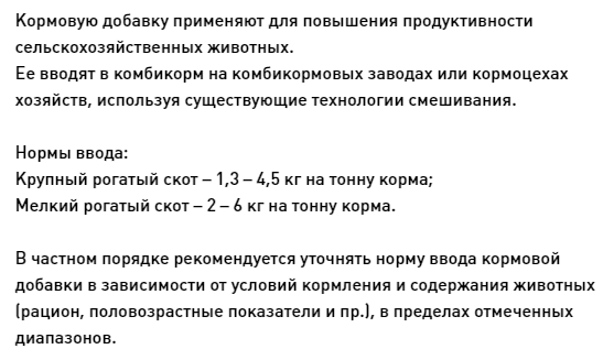 Экологически безопасна, не содержит гормонов и синтетических соединений. Основные компоненты состава способствуют улучшению физиологических показателей организма животных, повышению продуктивности и обеспечению профилактики заболеваний.
