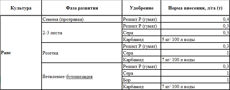 0,2-0,3 л/Га Опрыскивание растений в период вегетации 2 и более раз с интервалом не менее 10-14 дней. Расход рабочего раствора – 150-300 л/Га. Основные фенофазы: 2-4 настоящих листа, розетка-ветвление, образование стручков.